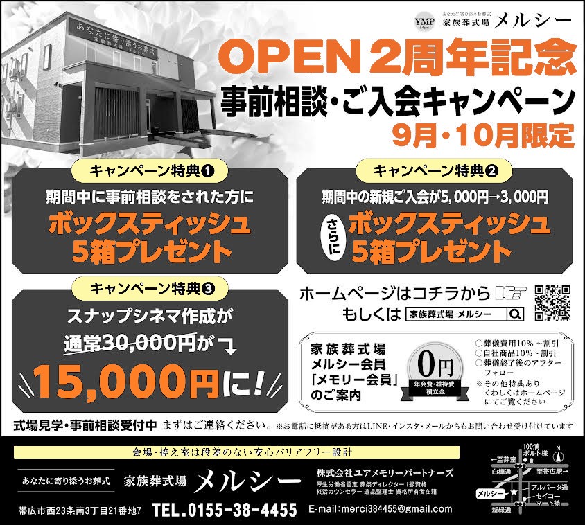 帯広の家族葬・一日葬・直葬なら「家族葬式場メルシー」